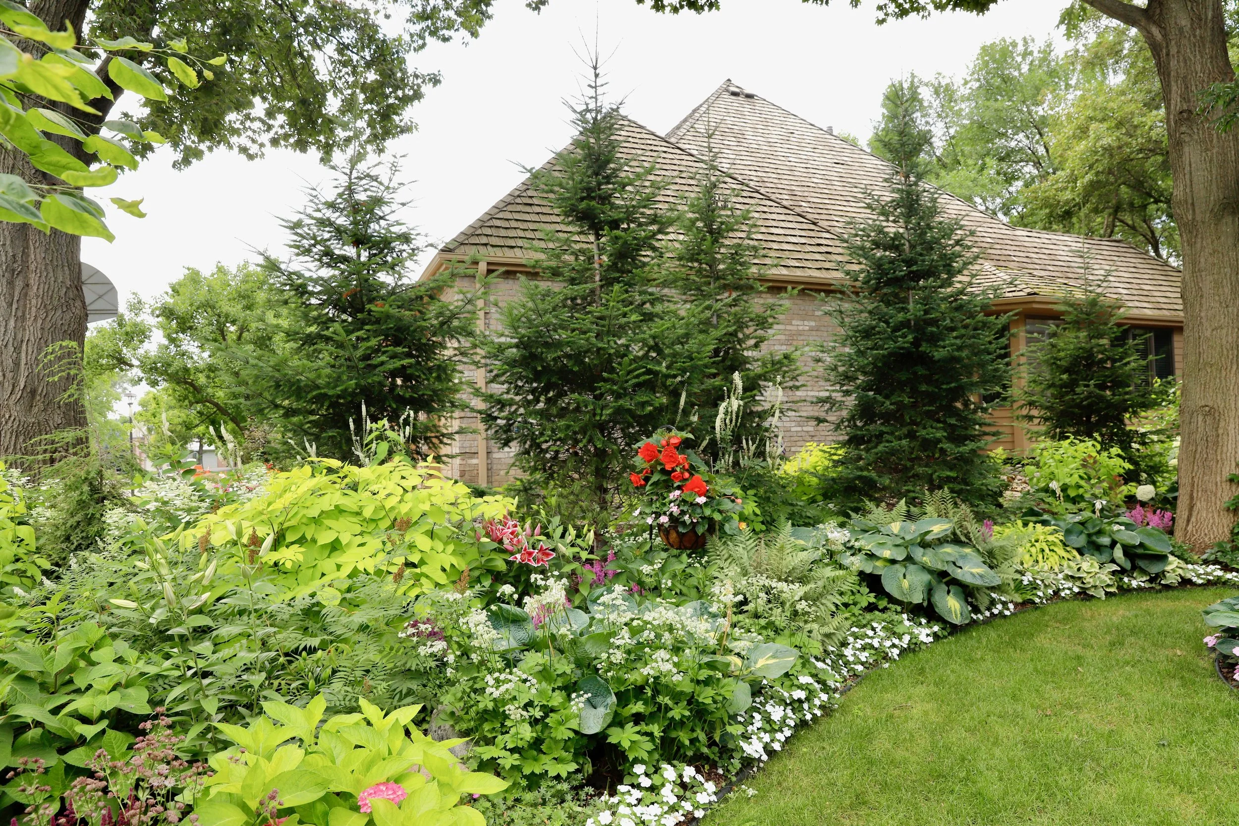 When the Kokoszka’s began gardening at their home in 2019, their backyard was an empty slate filled with invasive buckthorn plants. Tangletown Designer Matt Brooks and the Tangletown Landscaping team removed the weeds and brought the Kokoszka’s vision to life, designing and planting a serene wooded glade filled with thousands of plants. The garden curves gently through the property, drawing the eye around wide swaths of perennials that are anchored with original sculptures collected by the Kokoszka’s. Each year Joanna spends countless hours planting lush borders of annuals, ensuring an additional pop of color that balances the seasonal changes of the more mature plantings. She enjoys her time working to nurture and maintain her garden, both the physical aspect of working in the garden, and the satisfaction when her plants do well. Her mother and daughter also often join her in her gardening endeavors. For Joanna, gardening is a sensory experience, and she delights in noticing the pleasures of the garden around her such as how the morning light highlights different plants, and the gentle fragrance of the lilies. She hopes visitors to her garden will feel calm and relaxed, enjoying a contemplative stroll through the landscape.