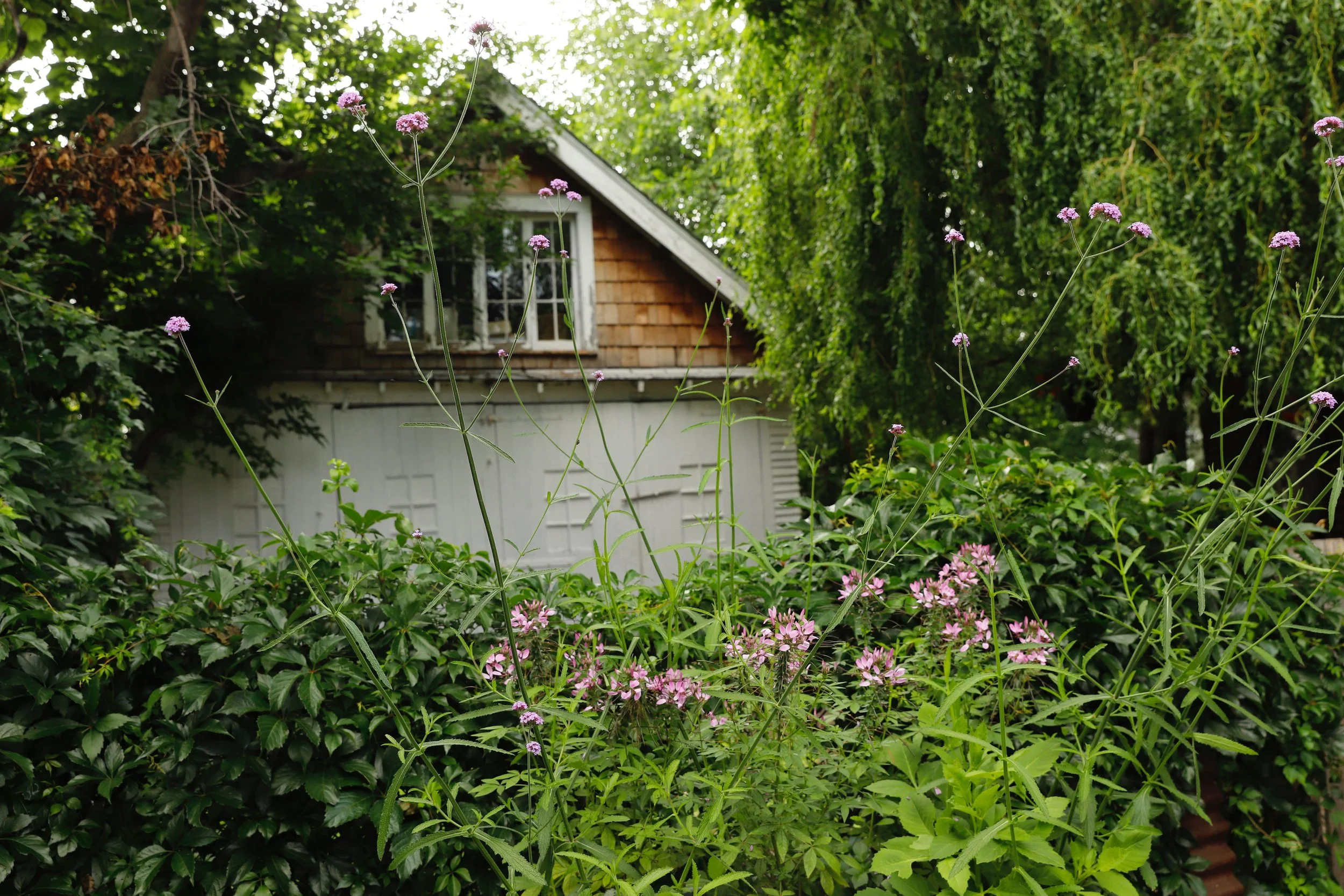 Reminiscent of an artist’s studio, Beth’s garden is a study in color and texture. She draws inspiration from nature and the environment, but also loves to pair interesting and unusual plants that might not often be found together, creating moments of surprise and inspiring roguish whimsey. Nestled throughout her property are clusters of her handmade pottery, filled with her impressive collection of unusual succulents. Beth spends as much time outside as possible in the summer, using her space for eating, relaxing, and doing art. She hopes visitors will take note of the variety of the plants in her garden, and spend time taking in their different colors, shapes, textures, and structures. Beth says her garden has taught her that “living things change and evolve, nothing is captured in time.”